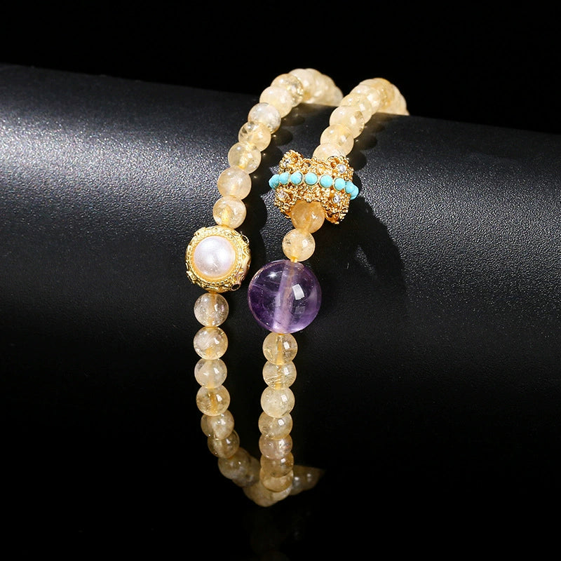 This Natural Citrine & Pink Amethyst Talisman Double Wrap Bracelet seamlessly combines fashion-forward design with ancient energy healing, offering the wearer not just beauty but balance and good fortune. Carefully selected natural citrine and pink amethyst beads bring healing properties and a unique sense of energy flow, while the double wrap design enhances comfort and style.